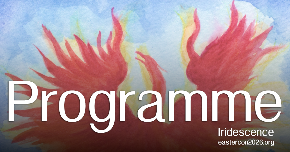 We have various items on programme that are either child-friendly or specifically for children to take part in. In particular, we are planning a session for any child who’d like to give a ten-minute talk (with slides if you want) about something they are passionate about, to a small and friendly audience. We’ve got three volunteers already but room for one or two more! Get in touch at programme@eastercon2026.org to let us know if you’d like to do this.